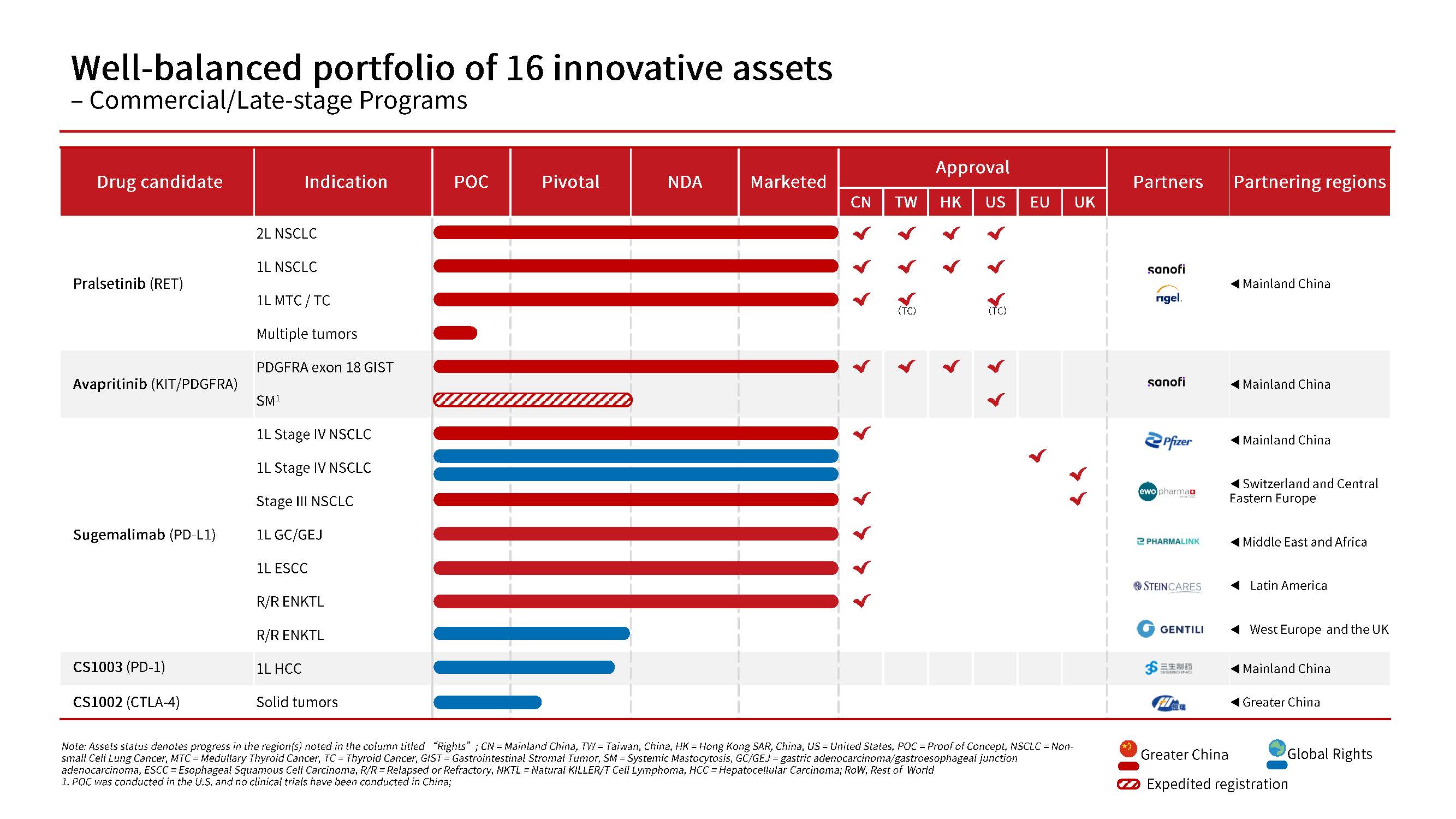To date, the Company has successfully launched 4 innovative drugs and secured approvals for 16 new drug applications (NDAs) covering 9 indications. The company’s pipeline is balanced by 16 promising candidates, featuring potentially first-in-class or best-in-class antibody-drug conjugates (ADCs), multispecific antibodies, immunotherapies and precision medicines.
